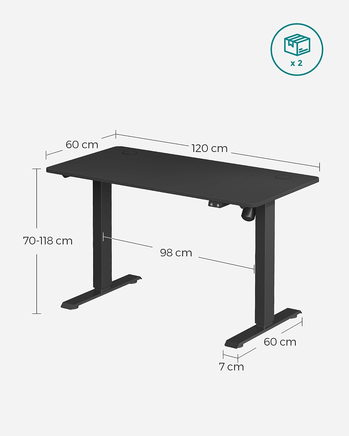Biurko z regulowaną wysokością czarne 120 x 60 x (73-114) cm
