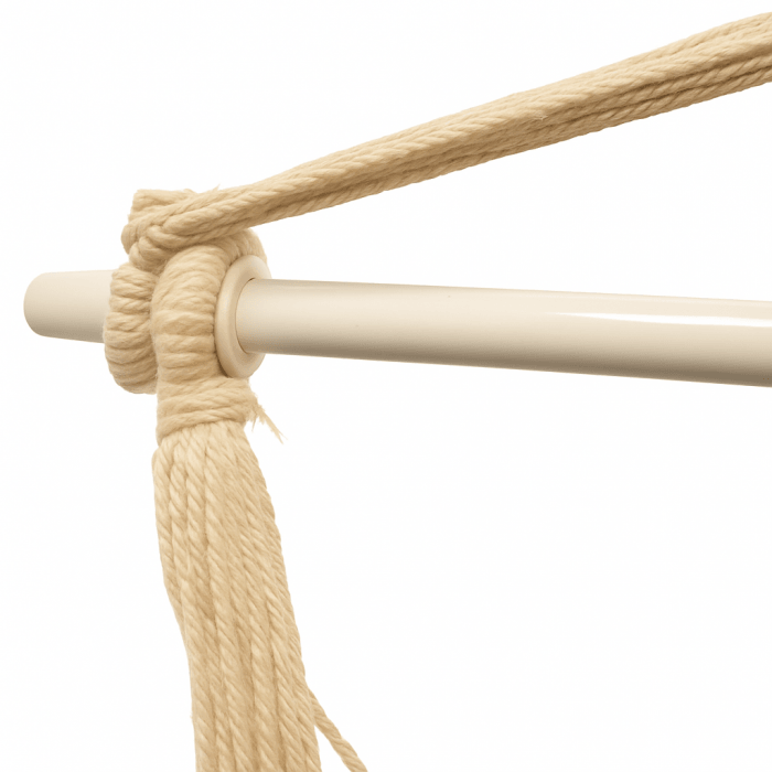 Solidne, plecione sznury oraz wytrzymały drążek zapewniają stabilność i bezpieczeństwo użytkowania, a maksymalne obciążenie do 150 kg sprawia, że fotel jest odpowiedni zarówno dla dorosłych, jak i starszych dzieci.
