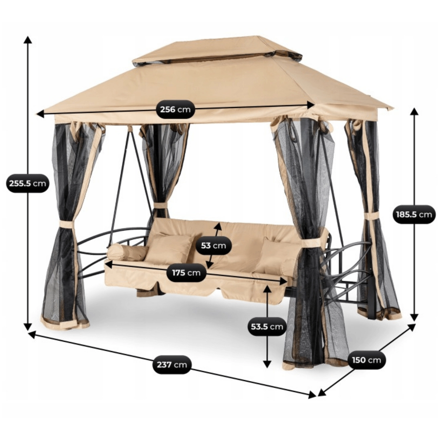 Huśtawka ogrodowa Riva z zadaszeniem Beżowa/Czarna