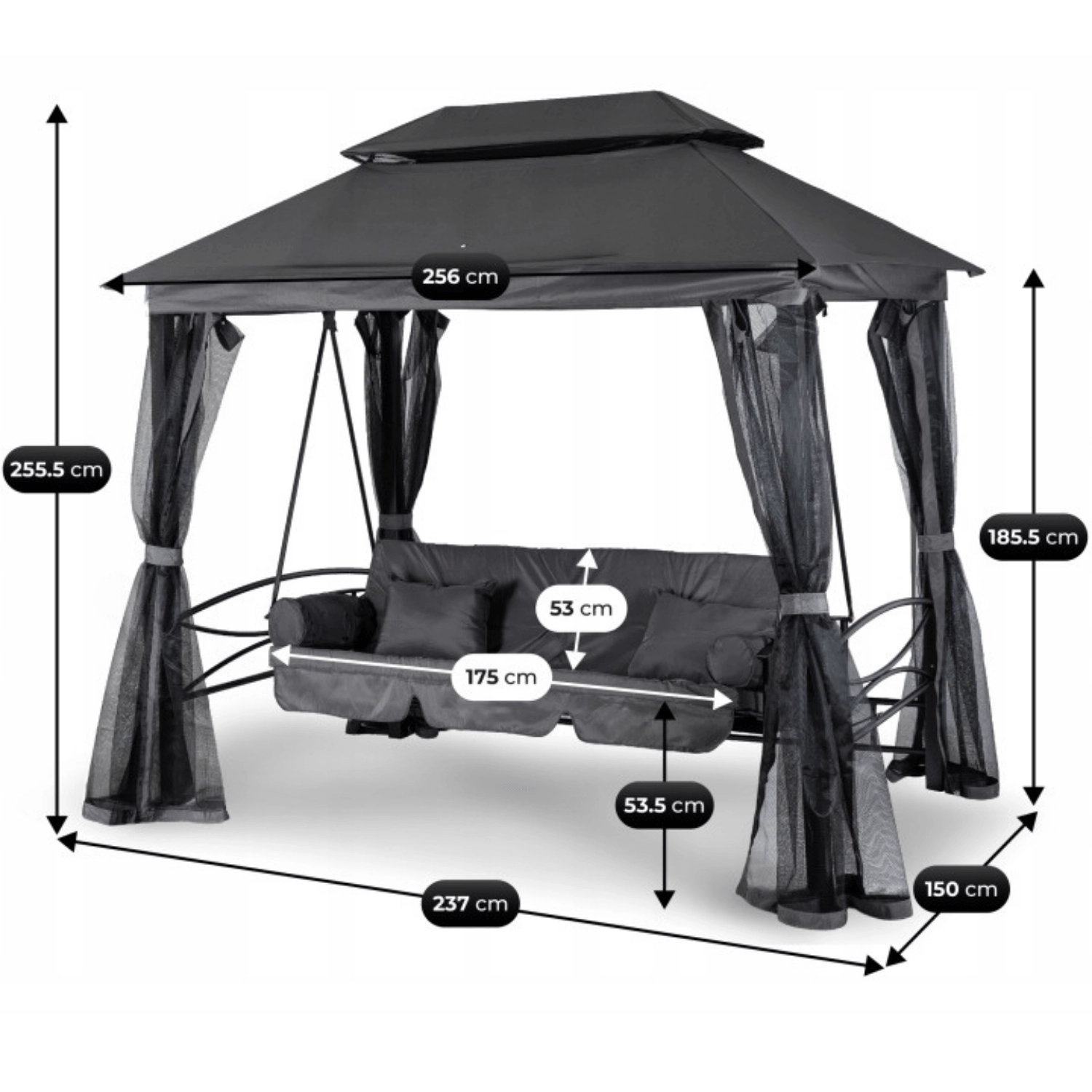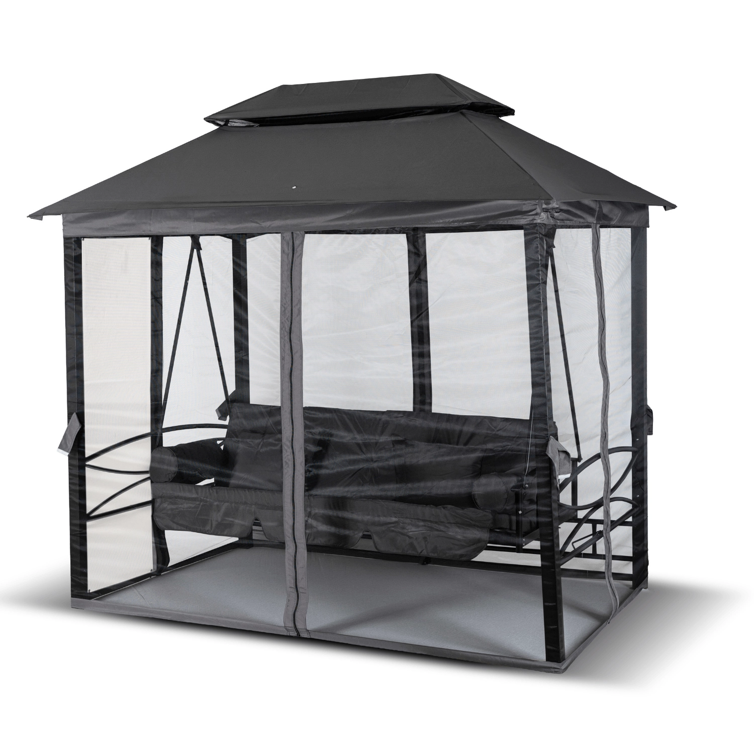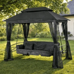Huśtawka ogrodowa Riva z zadaszeniem Szara/Czarna