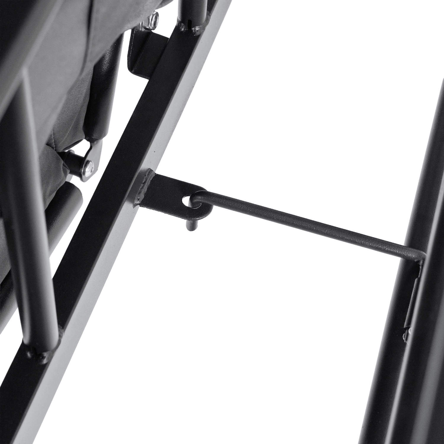 Dodatkowym atutem jest blokada pozycji leżącej, która zwiększa bezpieczeństwo i stabilność podczas odpoczynku. Całość oparta jest na solidnej, metalowej konstrukcji, co gwarantuje trwałość i niezawodność przez długi czas.