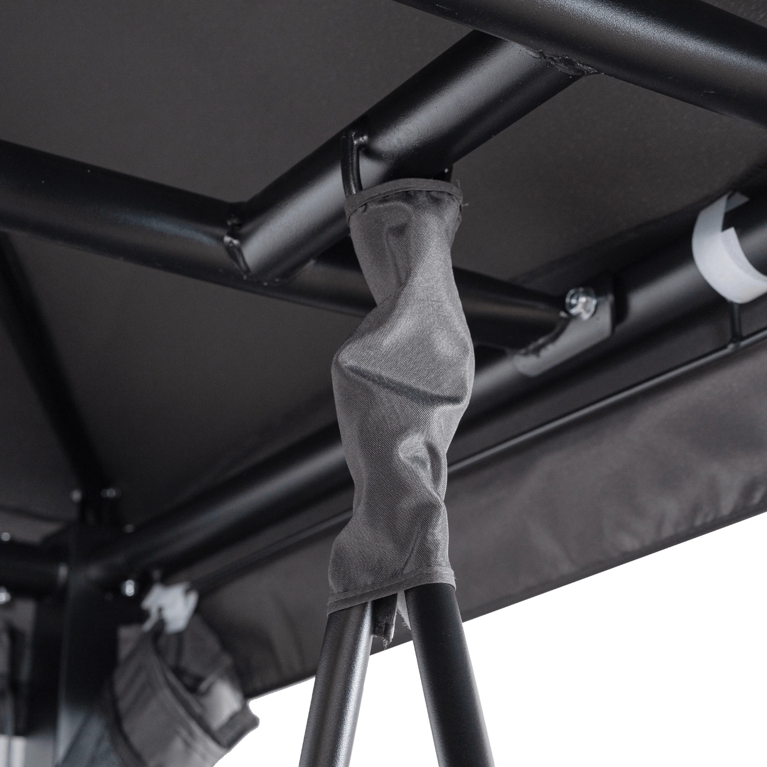 Huśtawka została wyposażona w rozsuwaną moskitierę, która skutecznie chroni przed owadami, jednocześnie nie ograniczając przewiewu. Hydrofobowy daszek zabezpiecza przed słońcem i lekkim deszczem, dzięki czemu możesz korzystać z niej w różnych warunkach.