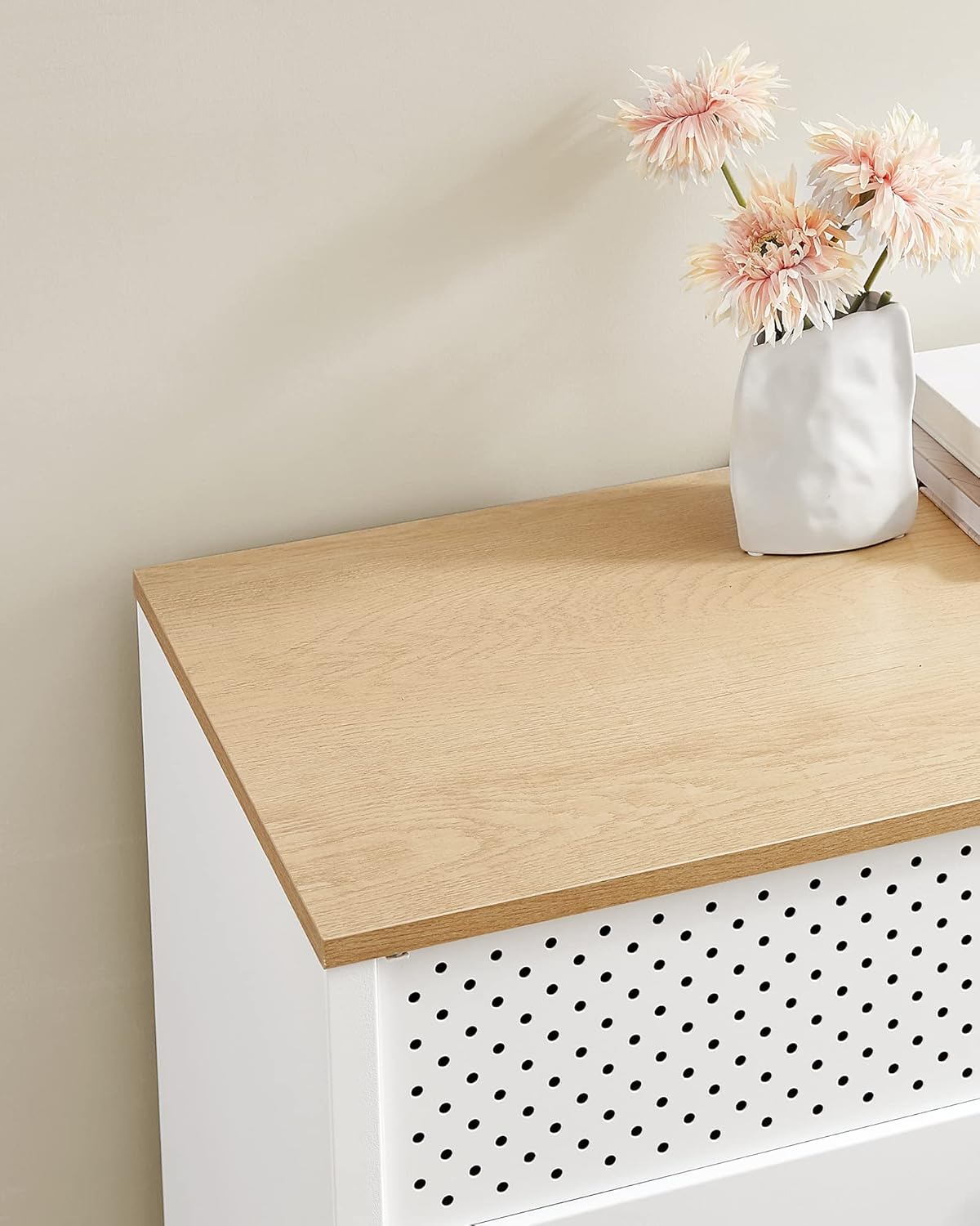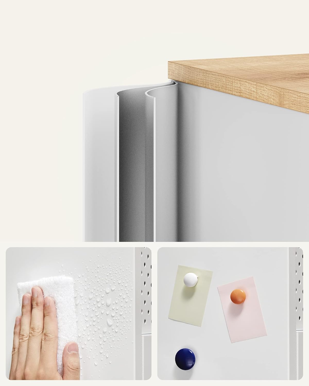 Ulepsz swoją przestrzeń do przechowywania dzięki stylowej i praktycznej komodzie, która pasuje do wielu wnętrz. Klasyczna biel w połączeniu z blatem w dekorze drewna nadaje meblowi nowoczesny, lekki wygląd, a jednocześnie sprawia, że łatwo dopasujesz go do kuchni, salonu czy biura.