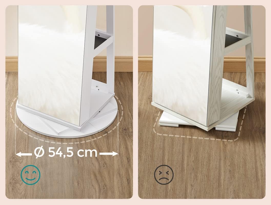 Lustro stojące z szafką na biżuterię i organizerem do makijażu biała obracana o 360 stopni