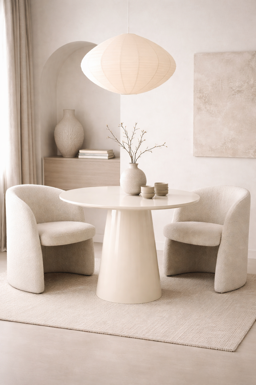 Stwórz nowoczesną i przyjazną atmosferę w swoim domu dzięki Sorento – stylowemu okrągłemu stołowi jadalnianemu zaprojektowanemu z myślą o funkcjonalności i estetyce. Błyszcząca, beżowa powierzchnia blatu subtelnie odbija światło, rozjaśnia wnętrze i nadaje mu świeży, modny wygląd.