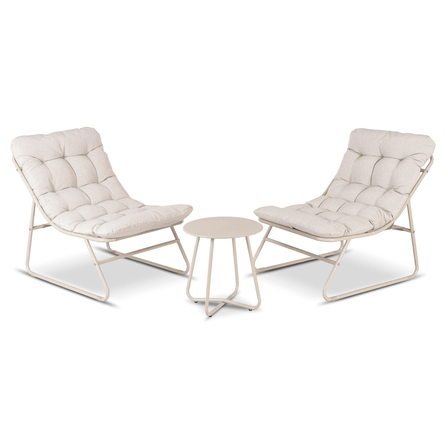Zestaw Mebli Ogrodowych MALAGA stolik kawowy + dwa fotele beżowy