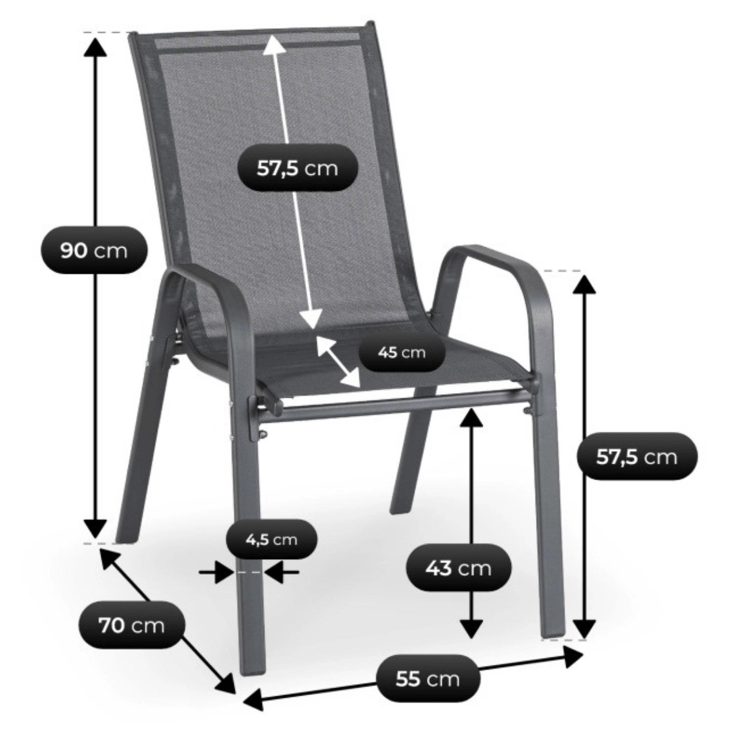 -Komfort na ciepłe dni – krzesła z przewiewnej siatki textilene dopasowują się do ciała i zapewniają odpowiednią cyrkulację powietrza