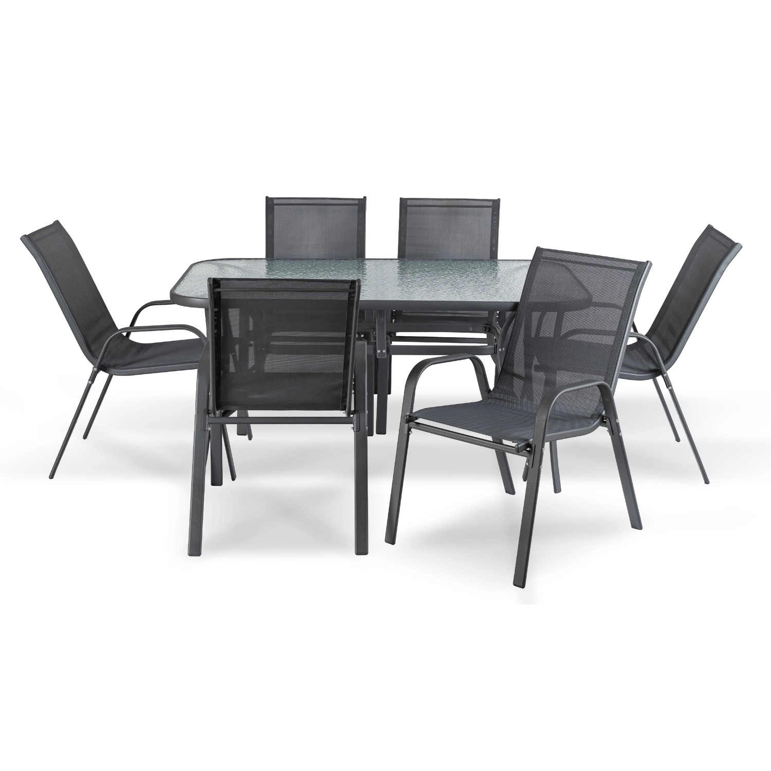 Zestaw Mebli Ogrodowych MARINA Stół + 6 krzeseł Czarny