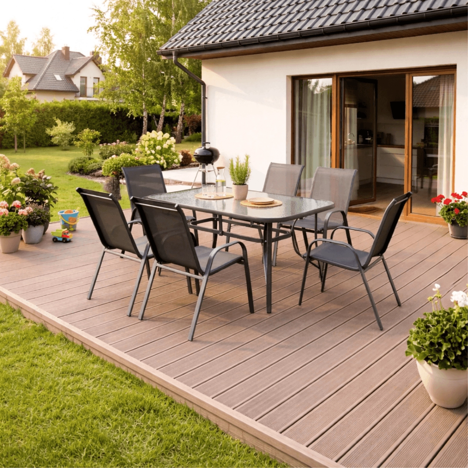 Zestaw MARINA to połączenie nowoczesnego stylu, wygody i funkcjonalności, które doskonale sprawdzi się podczas rodzinnych obiadów, spotkań z przyjaciółmi czy codziennego relaksu na tarasie lub w ogrodzie.