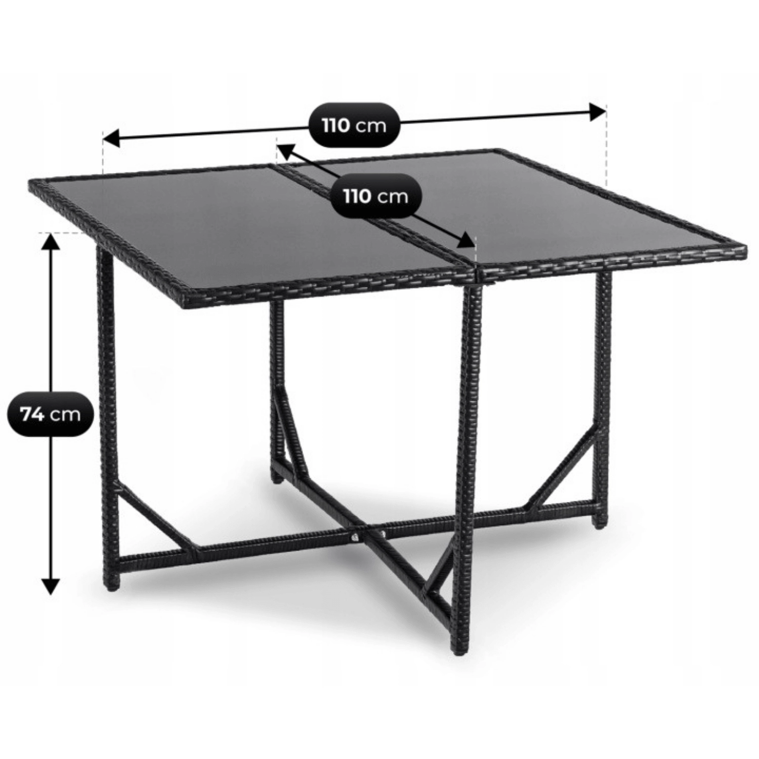 Zestaw został zaprojektowany tak, aby maksymalnie wykorzystać przestrzeń – pufy bez problemu wsuniesz pod fotele, dzięki czemu całość wygląda estetycznie i kompaktowo po zakończeniu użytkowania. Stół z hartowanym szkłem jest nie tylko elegancki, ale też łatwy w czyszczeniu i odporny na codzienne użytkowanie.