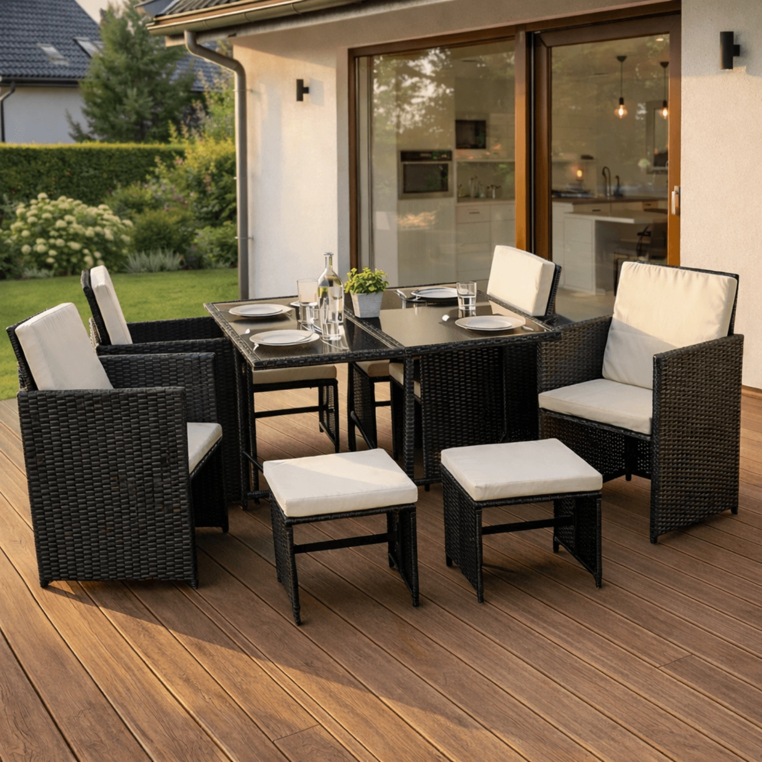 VEROLA to coś więcej niż zwykły zestaw ogrodowy – to gotowa przestrzeń do relaksu, która łączy nowoczesny design z codzienną wygodą. Eleganckie połączenie czerni i kremu tworzy ponadczasowy styl, który świetnie wygląda zarówno na dużym tarasie, jak i mniejszym balkonie.