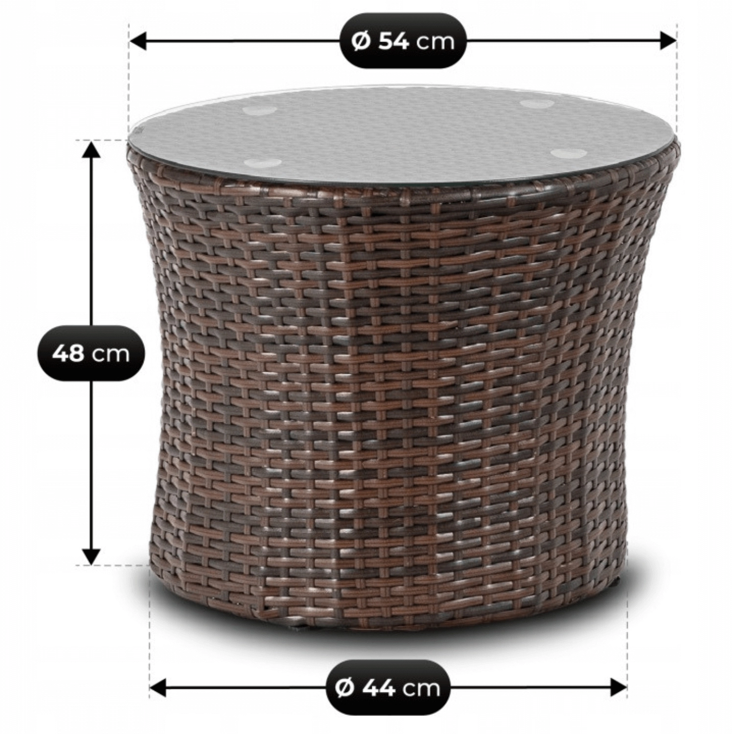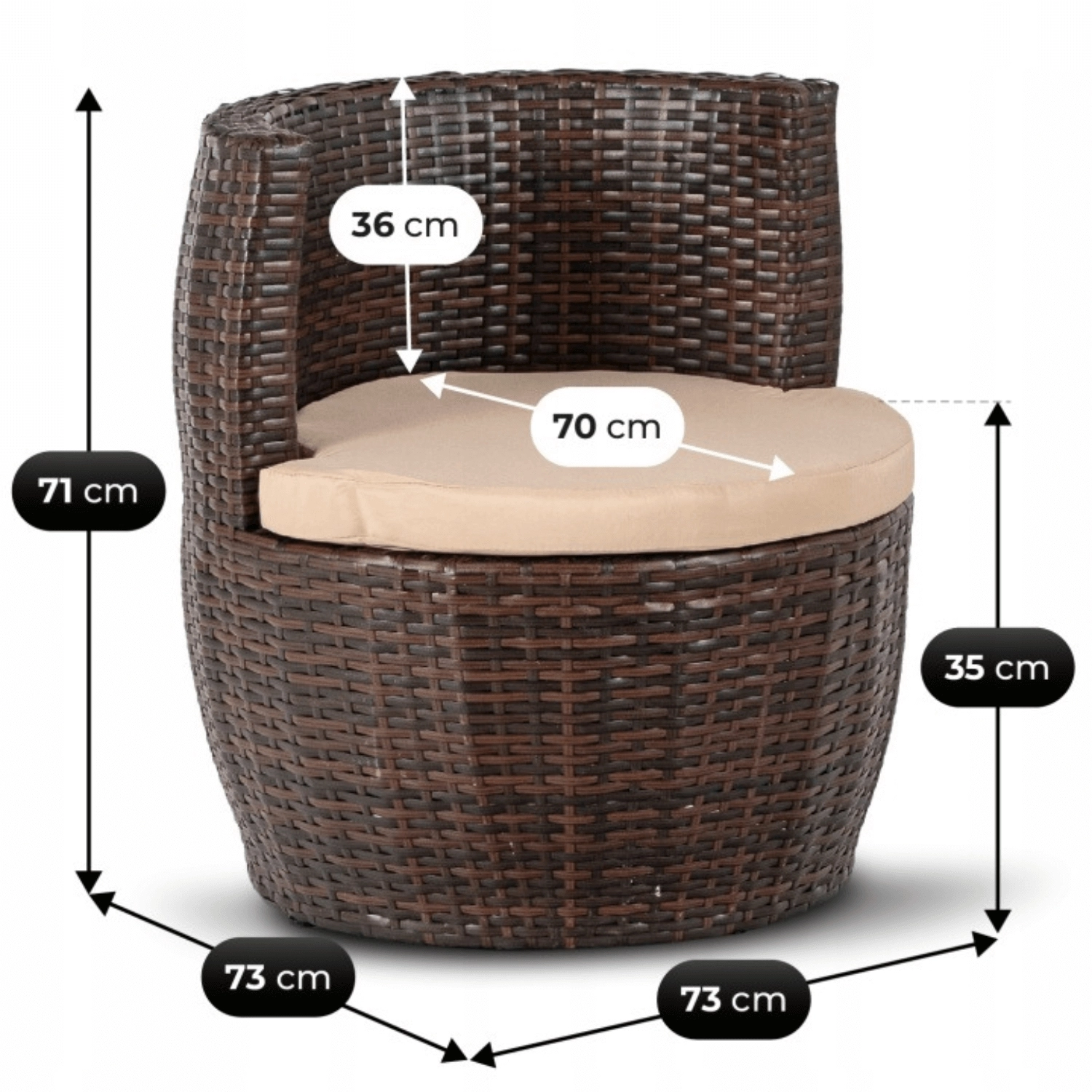 Zestaw Petra to elegancki komplet wypoczynkowy, który świetnie sprawdzi się w ogrodzie, na tarasie, patio, a także na większym balkonie. Dwa wygodne fotele i okrągły stolik tworzą przyjemną przestrzeń do relaksu, porannej kawy lub spokojnych chwil na świeżym powietrzu.