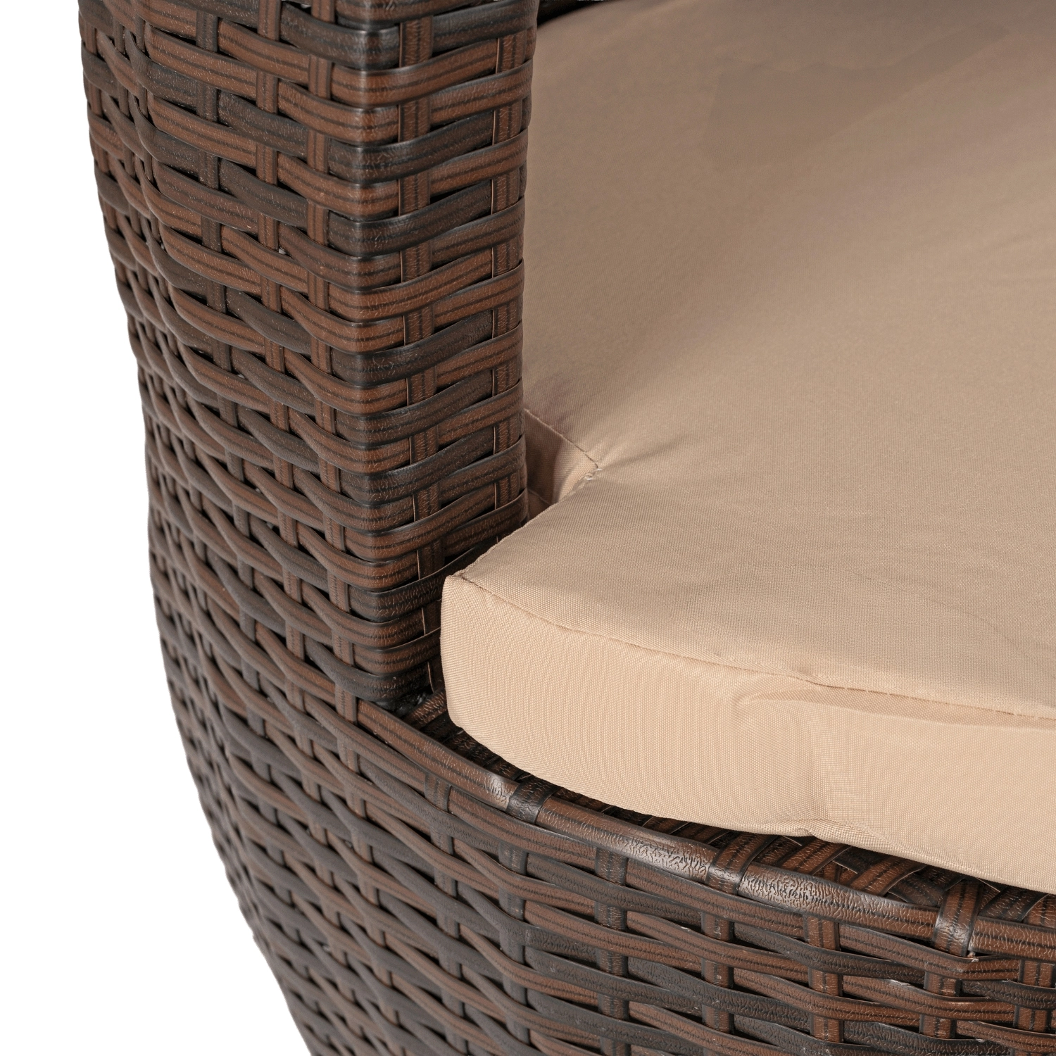 Stylowy wygląd – połączenie brązowej kolorystyki z beżowymi poduszkami prezentuje się elegancko i łatwo wpisuje się w różne aranżacje zewnętrzne.