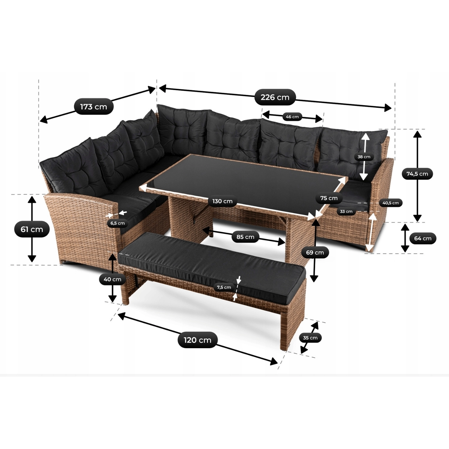 Zestaw ogrodowy Sano Jasnobrązowy/Czarny